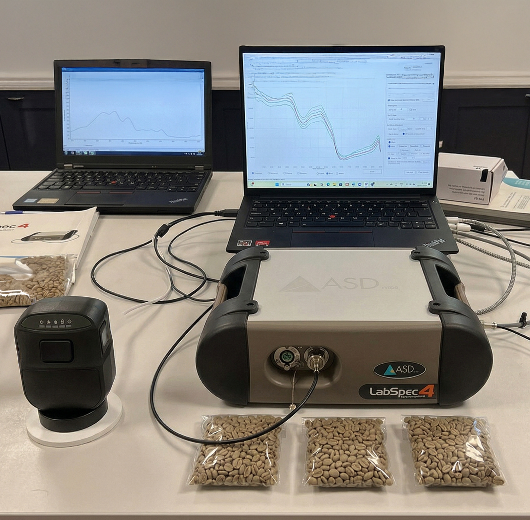 Using NIRS and calibrated reference data, this approach estimates professional cupping scores at scale and supports more consistent quality evaluation. Built on more than 800 Cup of Excellence samples collected between 2022 and 2026 across multiple origins, it reports more than 90% precision and strong correlation with reference scores, with future development extending into integrated defect flagging.
